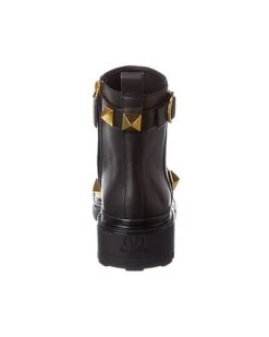 - Roman Stud Leather Boot in black leather and gold-tone hardware with Roman studs