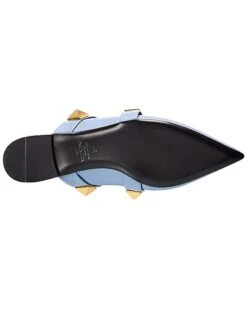 - Roman Stud Leather Flat in blue leather with gold-tone pyramid stud details