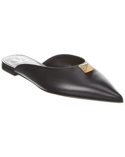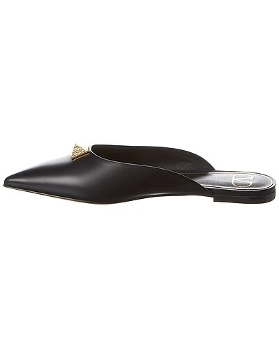 - Roman Stud Leather Mule in black leather and gold-tone hardware with oversized stud