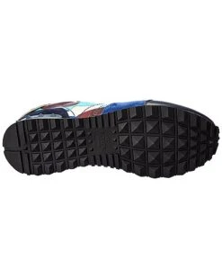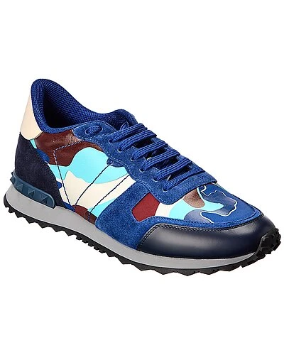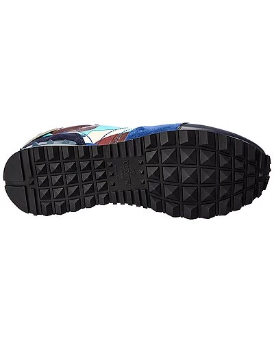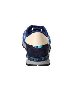 - Suede & Leather-Trim Sneaker in navy leather and suede and camo canvas