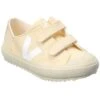 - Small V-10 Mid Leather Sneaker in gold and white leather and silver-tone hardware with logo accents
