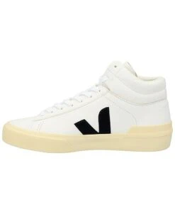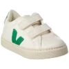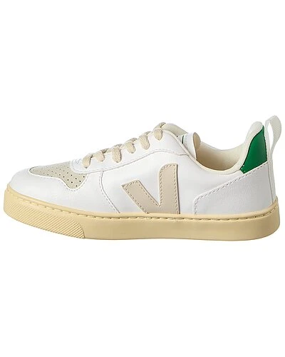 - Small V-10 Sneaker in white, pierre and emerald faux leather with logo accents