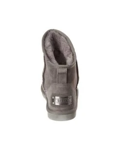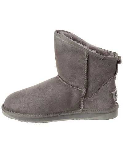 - Cosy X Short Sheepskin Boot in grey sheepskin and gold-tone hardware with trademark curve shaft